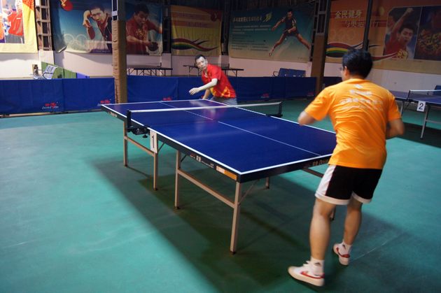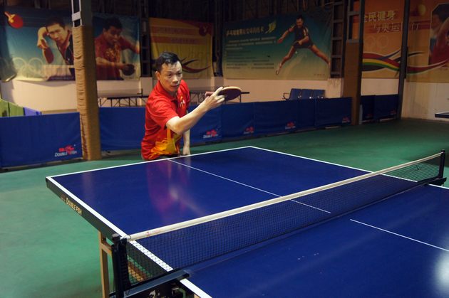 图5、乒乓球友谊赛中,丝瓜视频免费观看市场总监霍达炎旋转式开球