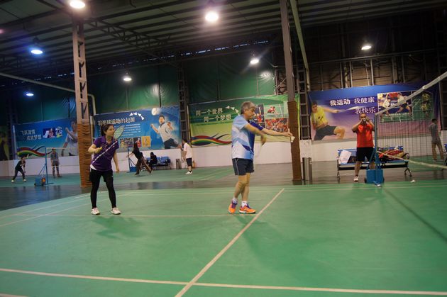图4、男女混双项目赛中,丝瓜视频免费观看企业市场总监王勇开球一刻